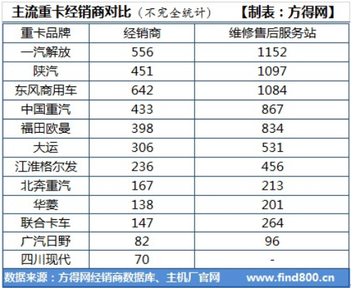 可以看看下面這張記者根據(jù)資料整理的國內重卡渠道網(wǎng)絡情況: