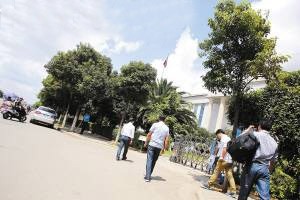 出于各種原因考慮,被告人不愿直面鏡頭。圖為臨近開庭時被告人依次走進法院大門
